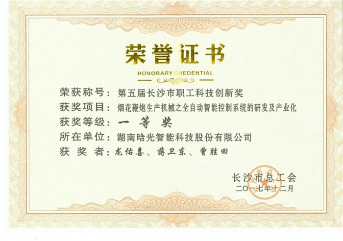 晗光智能喜獲長沙市職工科技創新獎